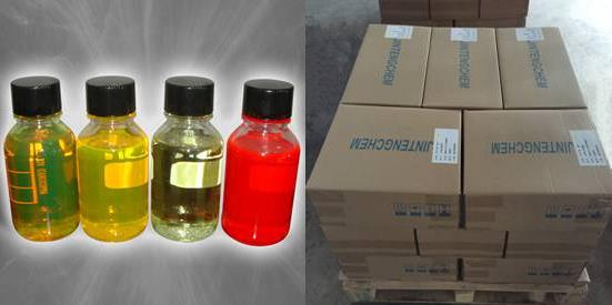 目前在用的發光液溶劑一般采用DMP(鄰苯二甲酸二甲酯),BB(苯甲酸正丁酯)和ATBC(乙酰檸檬酸三丁酯)等,其中DMP溶解性好,價格適中,但是隨著近年來國際市場上對環境保護的重視,含鄰苯二甲酸酯類產品已經被歐美國家明令禁止使用。而BB產品屬環保型溶劑,對CPPO的溶解性能較好,唯一的缺點是價格稍貴。ATBC的價格介于DMP和BB之間,雖然也屬環保型溶劑,但溶解性和流動性差,使用ATBC做成的熒光棒在亮度和通透程度上均不及BB。 為了綜合以上各種溶劑的優點,彌補各自的缺點,本公司經大量實驗,開發出一種新穎環保型發光液專用溶劑,價格適中,溶解性好,對熒光棒的發展起到了很好的推進作用。